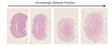 Tipp 2:Fixieren Sie das Gewebe so schnell wie möglich nach der Exzision. Wenn eine sofortige Fixierung nicht möglich ist (z. B. aufgrund einer längeren Blutung oder einer Verzögerung nach der Obduktion), lagern Sie die Probe vorübergehend in einer iso tonischen Lösung. Idealerweise sollte die Fixierung innerhalb beginnen4 StundenDer Gewebe entfernung, um Autolyse und RNA-Abbau zu vermeiden.